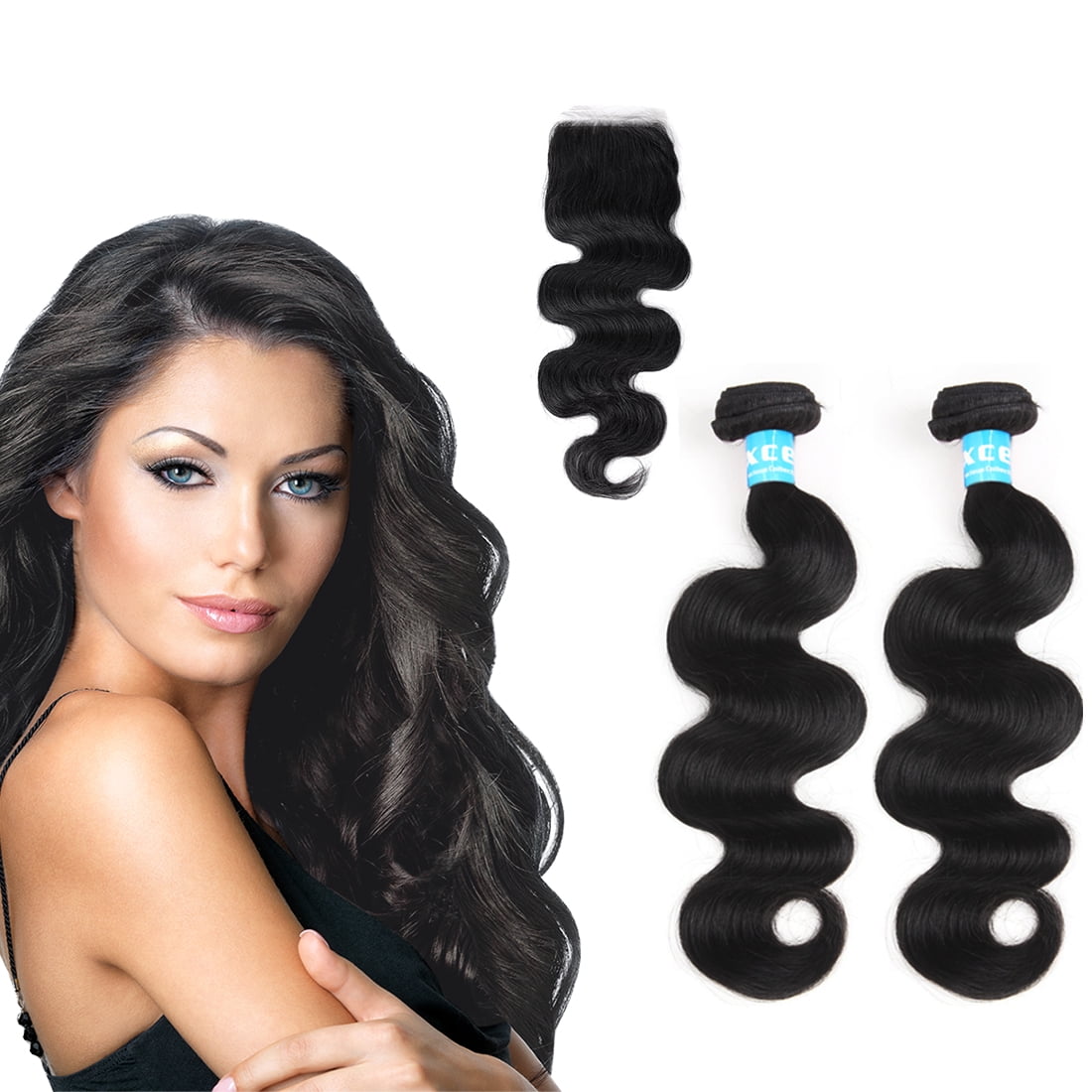 Unique Bargains Body Wave Human Hair 16 16 2 Bundles 12 Three Part Closure 4x4 Walmart Com