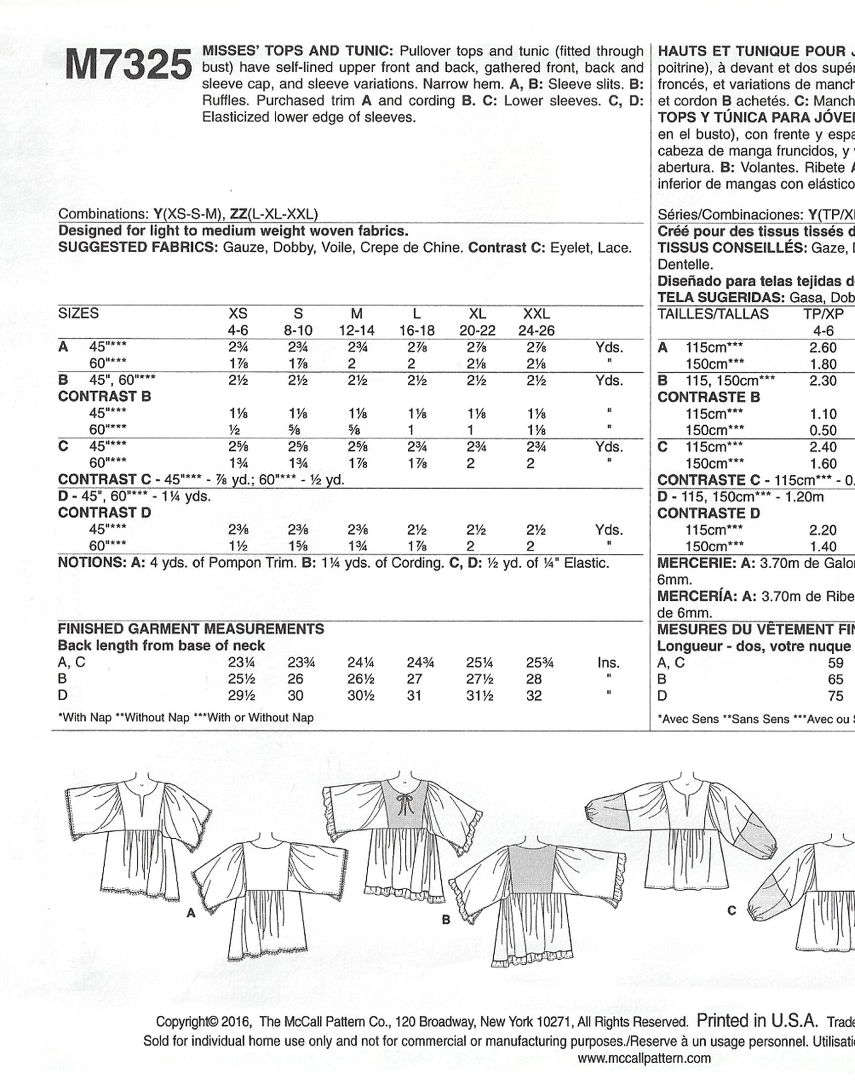 Mccalls M7325 Sewing Pattern Misses Easy Gathered Tops And Etsy
